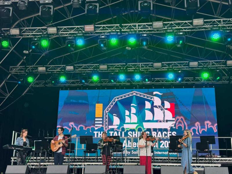The band, Laura Harrington, Kirsty Clements, Sharon Hassan, Sarah Beattie, and Louie Watson bring dynamic arrangements with deep-rooted cultural influences from the North East, West and Northern Isles of Scotland.